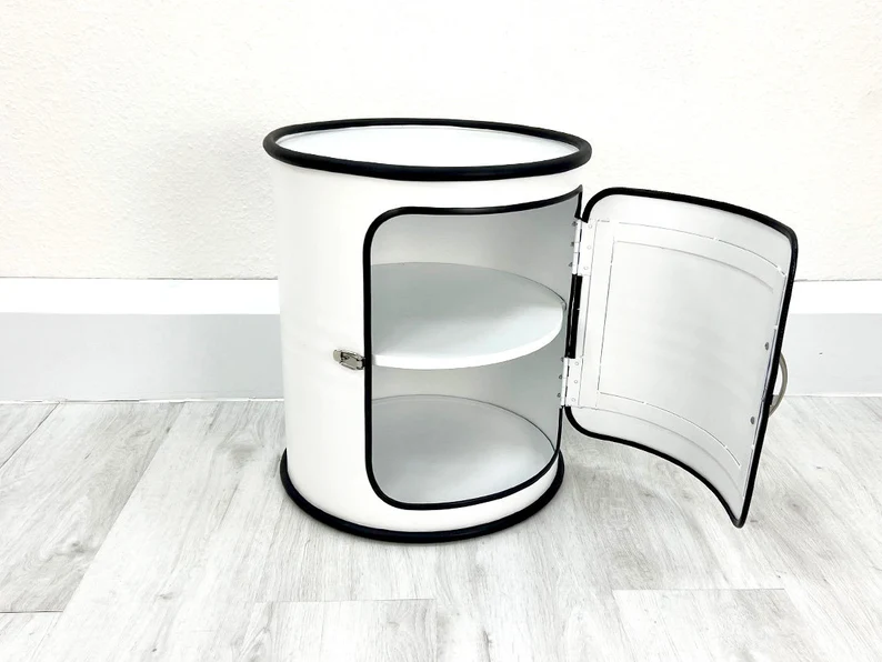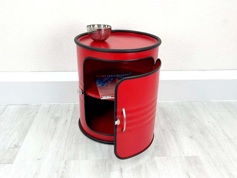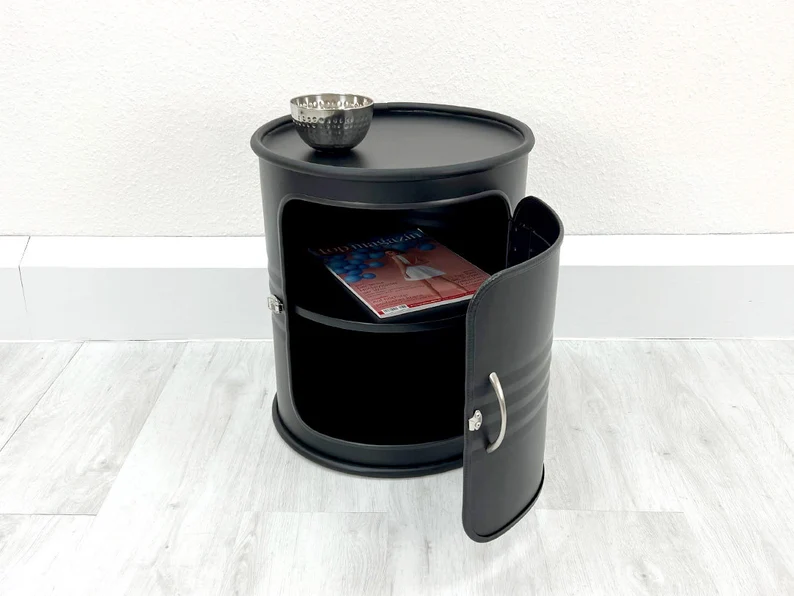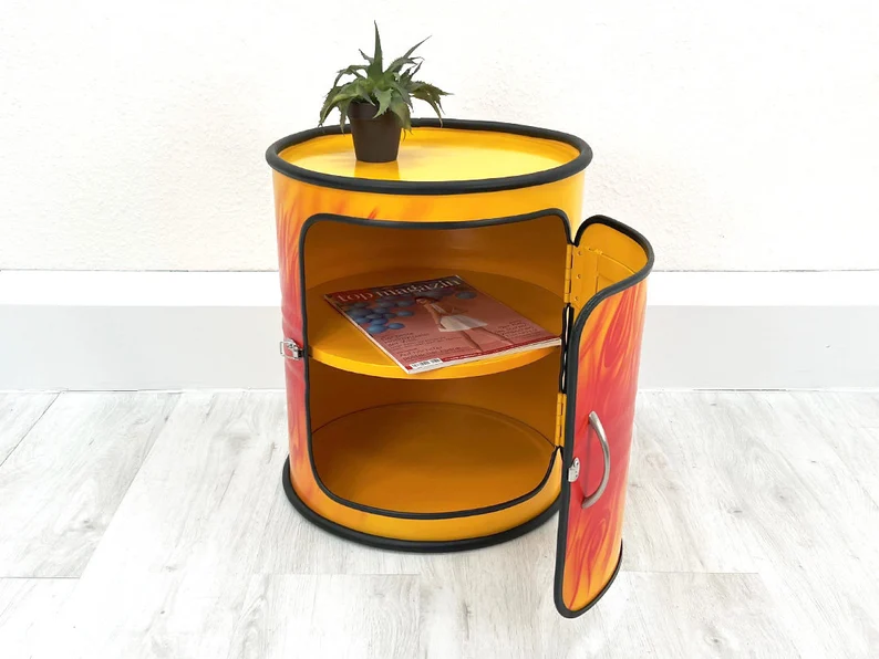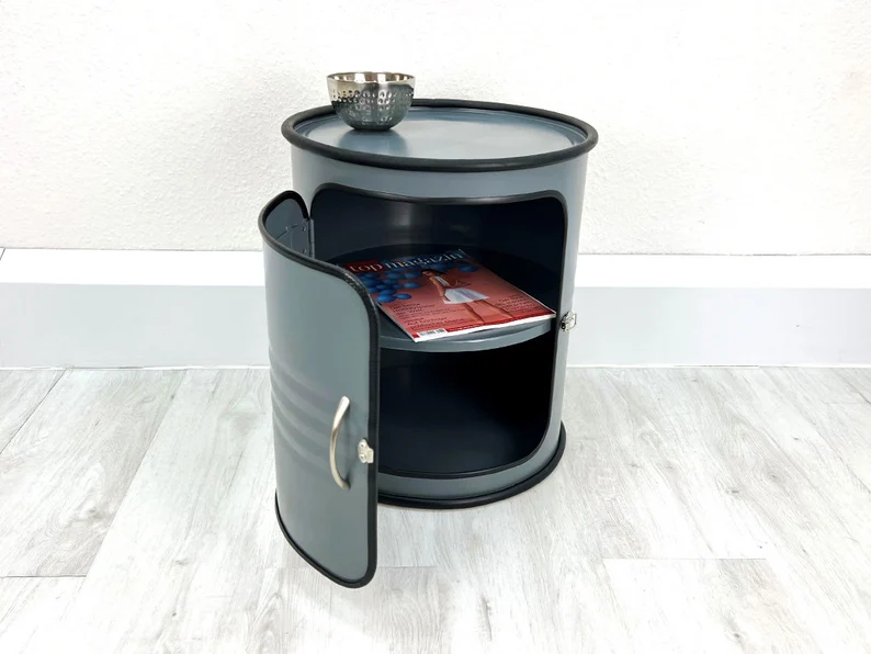 Meuble upcyclé fabriqué à partir d’un baril métal recyclé