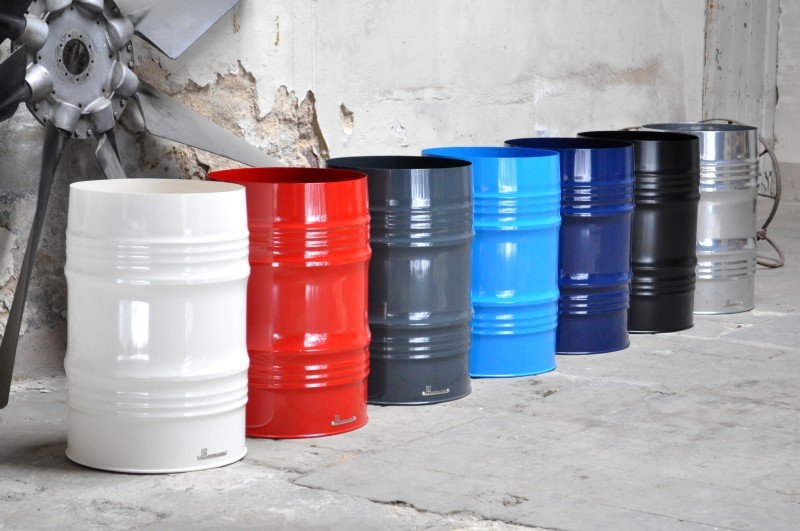 Corbeille à papier upcyclée 60 L en fût métal – Design industriel éco-responsable