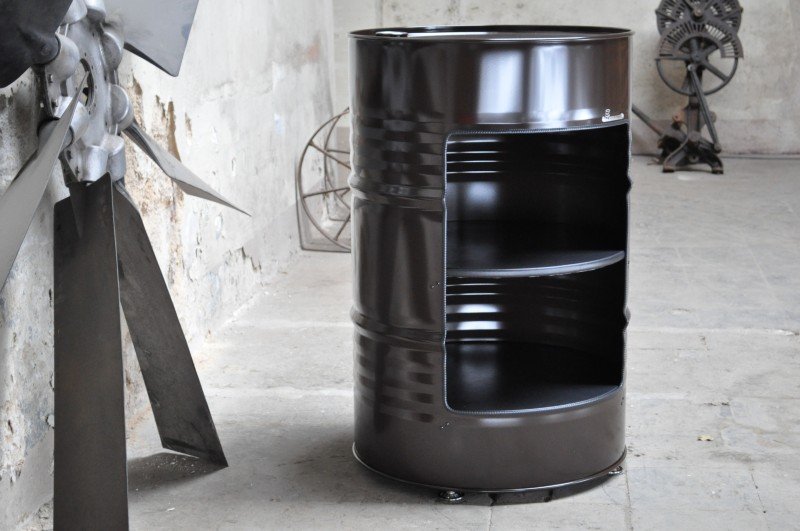 Véritable meuble en tonneau métal upcyclé 200L