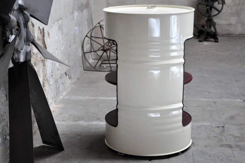 - Fût en acier recyclé – capacité d’origine 200 litres