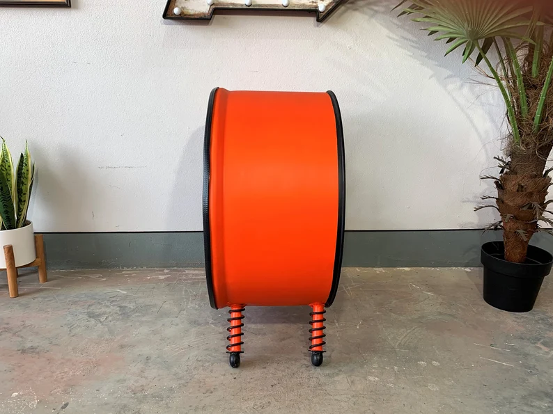 Meuble upcyclé à partir d’un tonneau métallique de 200 L