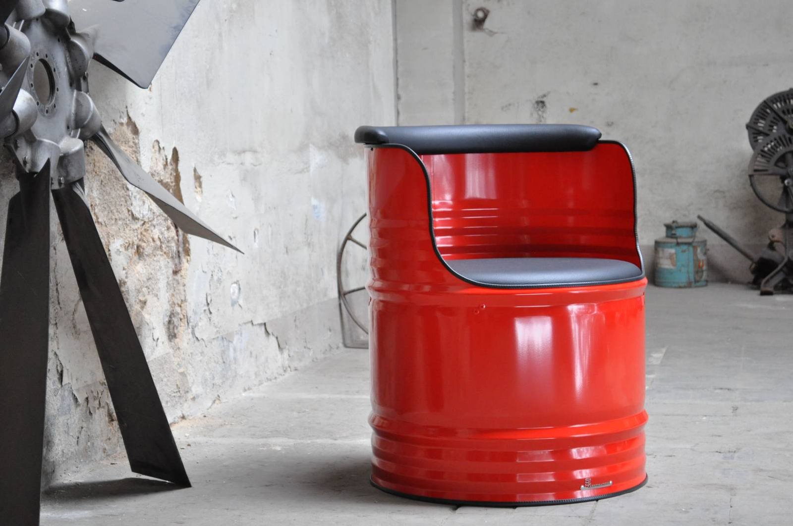Fauteuil Tonneau Métal Upcyclé 200L – Personnalisable avec Logo – Design Industriel Confort Premium