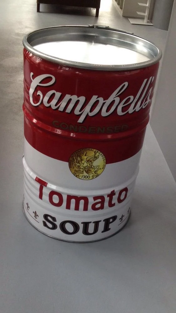 Ce fût métal pop art Andy Warhol est bien plus qu’un simple baril : c’est une pièce de mobilier upcyclé au fort impact visuel. Inspiré de la célèbre boîte de soupe Campbell’s, symbole iconique du mouvement pop art, ce tonneau industriel de 200 litres apporte une touche artistique et contemporaine à tous les espaces.