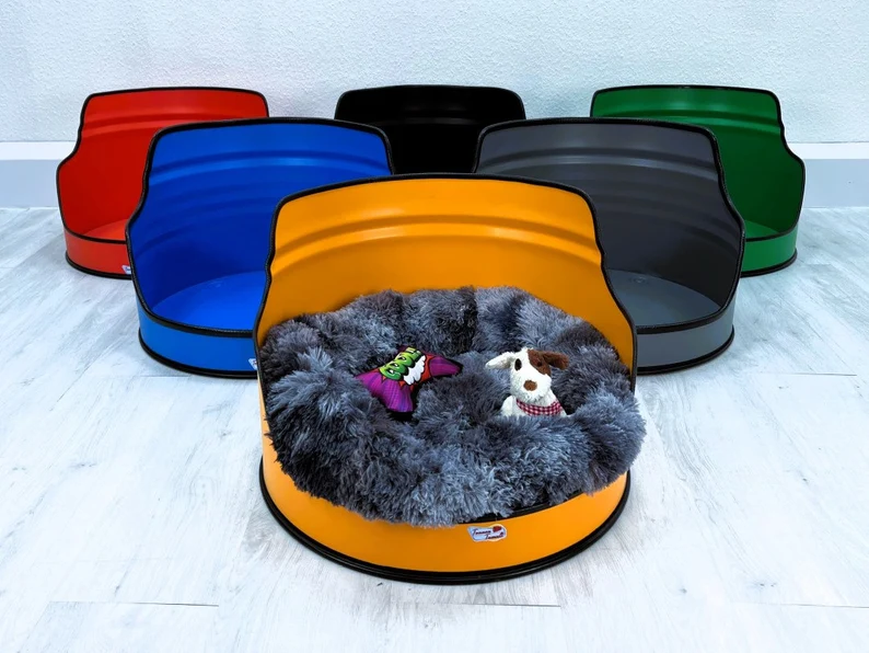 Offrez à votre compagnon un couchage original et durable avec le lit pour animal « Big Sweety » en tonneau métal upcyclé. Fabriqué à partir d’un fût industriel de 200 L recyclé, il combine robustesse, design industriel et confort.