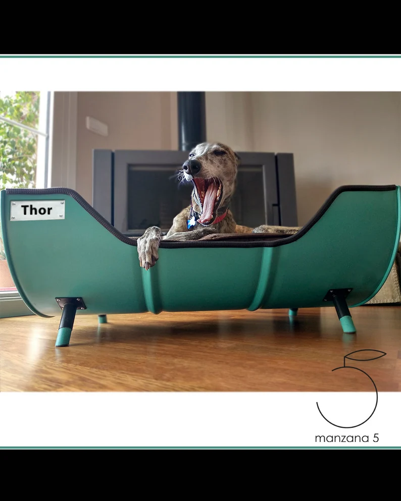 Ce lit pour chien industriel est issu de la transformation artisanale d’un baril métallique de 200 litres. Chaque pièce est soigneusement découpée, poncée et repeinte afin de créer un couchage robuste, esthétique et respectueux de l’environnement. Ce concept d’upcycling donne une seconde vie à un matériau industriel tout en réduisant les déchets et l’empreinte carbone.
