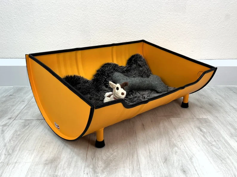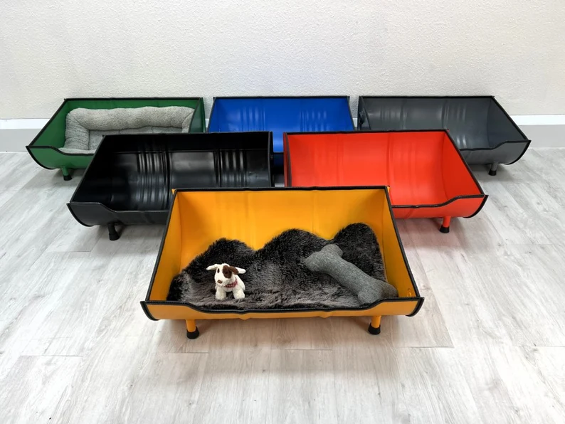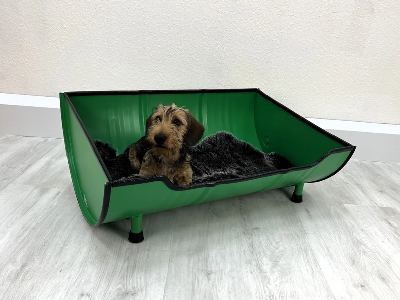 En choisissant ce lit pour chien en tonneau recyclé, vous soutenez une démarche de mobilier upcyclé et de recyclage créatif. La transformation de fûts industriels limite la production de déchets métalliques et réduit la consommation de matières premières neuves.