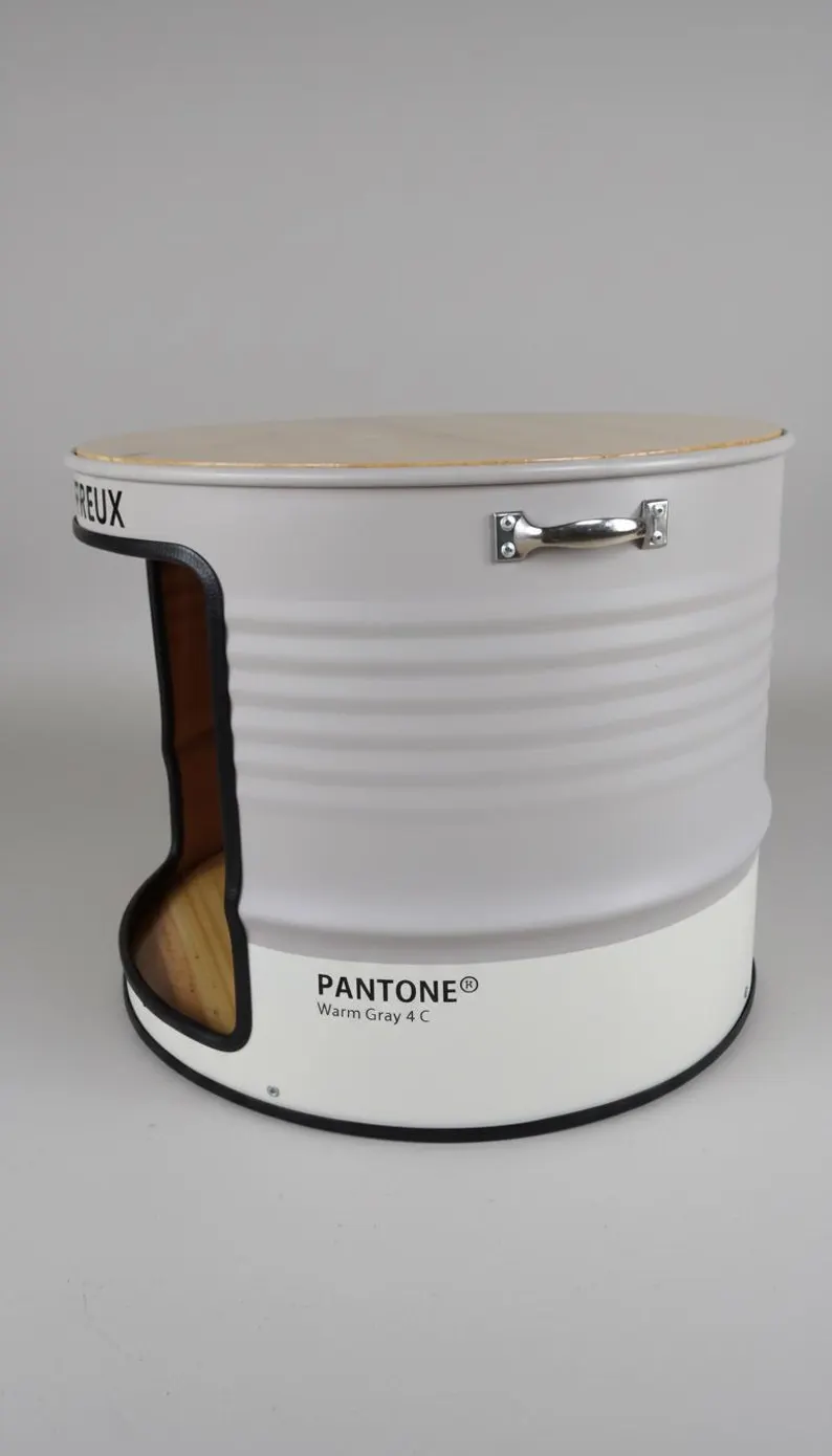 Cette maison grotte pour chat et petit chien est bien plus qu’un simple couchage : c’est un meuble upcyclé multifonction issu de la transformation artisanale d’un baril métallique industriel de 200 litres. Chaque pièce est façonnée à la main pour offrir un équilibre parfait entre design industriel moderne, fonctionnalité et durabilité.