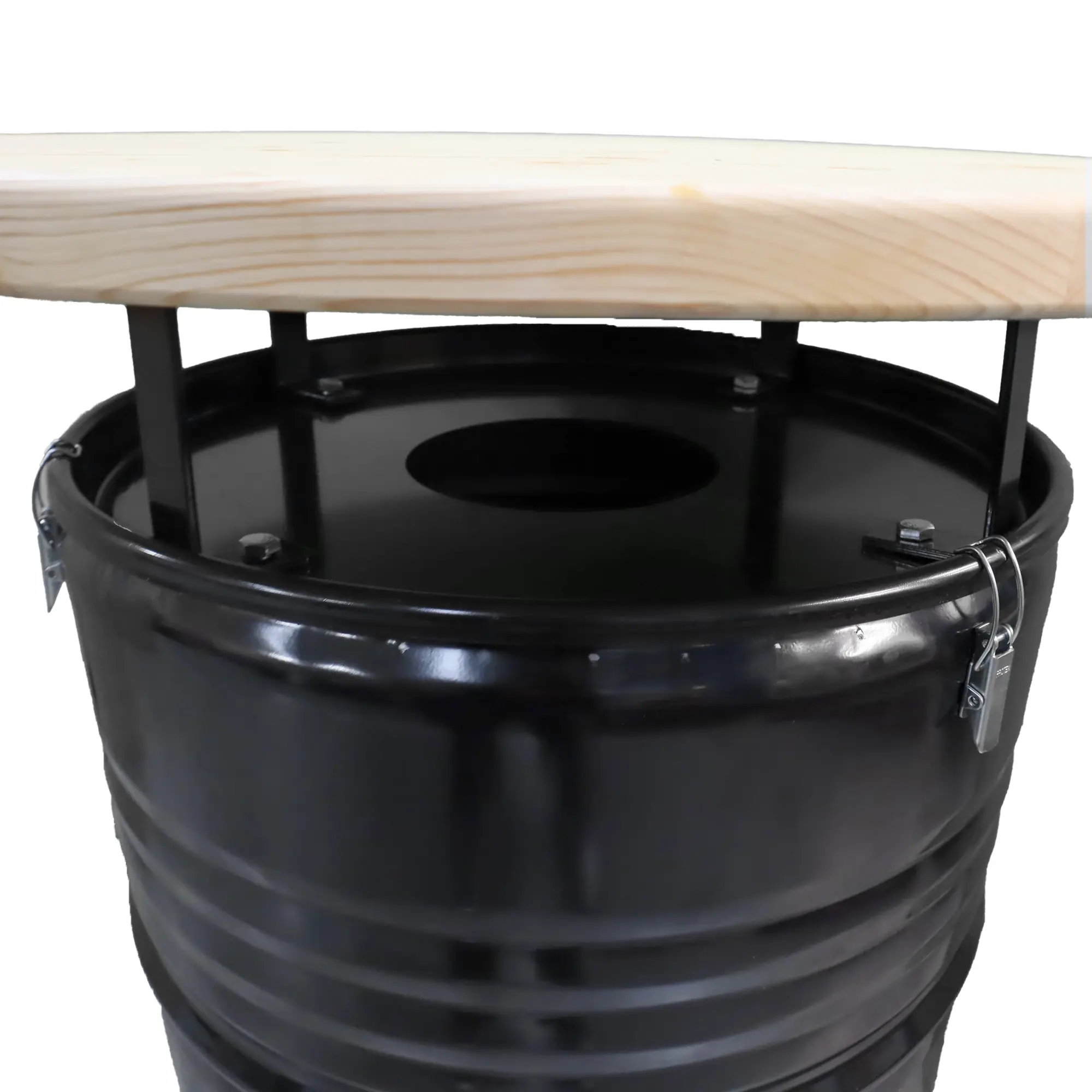 Mange-debout Upcycling 200L avec Plateau Bois 80 cm & Fonction Poubelle – Tonneau Métal Industriel