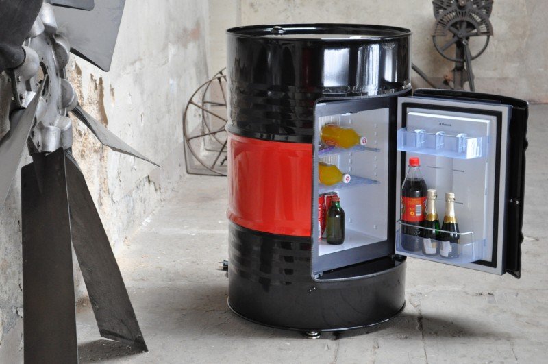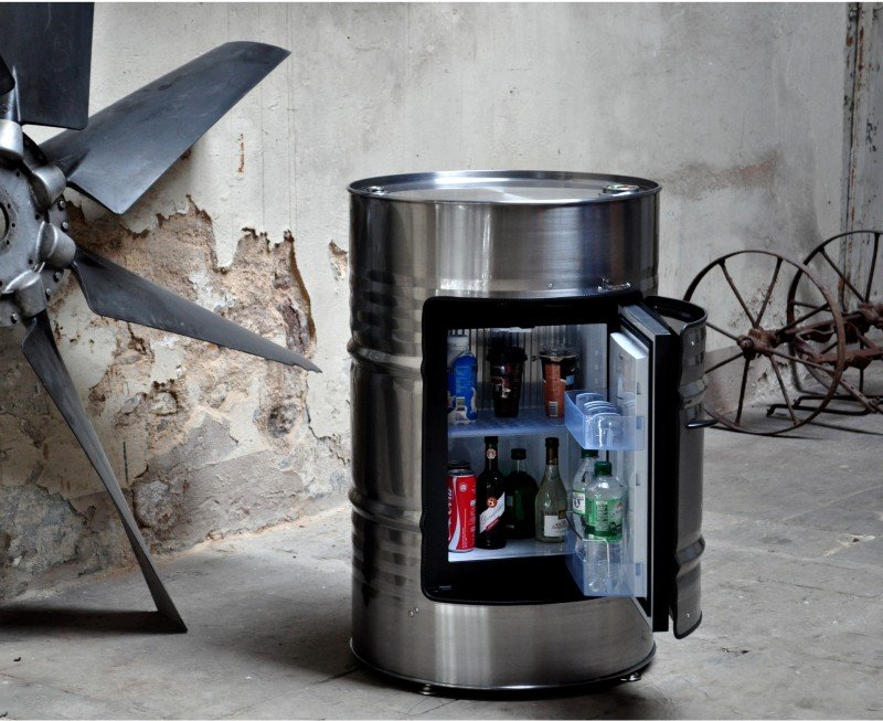 Minibar en Tonneau Métal 200L – Design Industriel avec Réfrigérateur Dometic Intégré