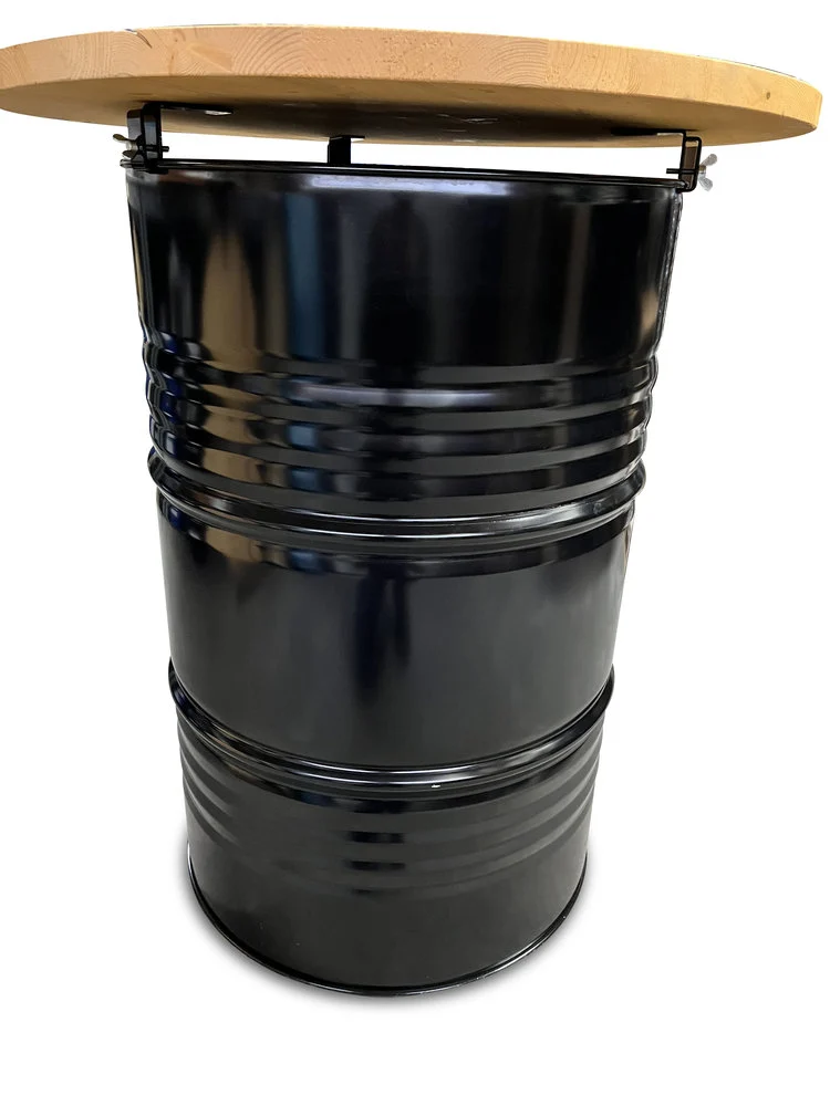 Ce plateau transforme votre baril métallique en véritable meuble polyvalent :