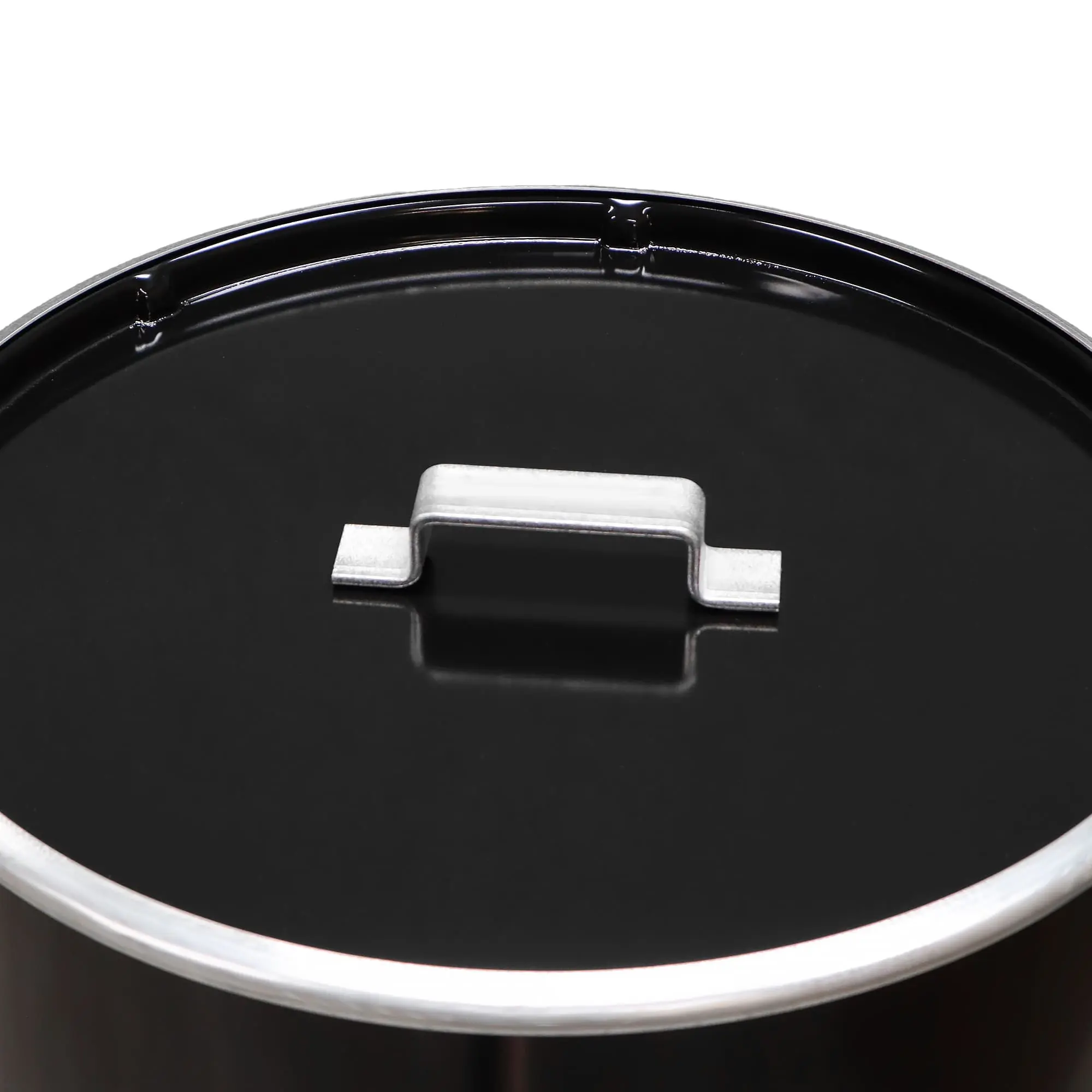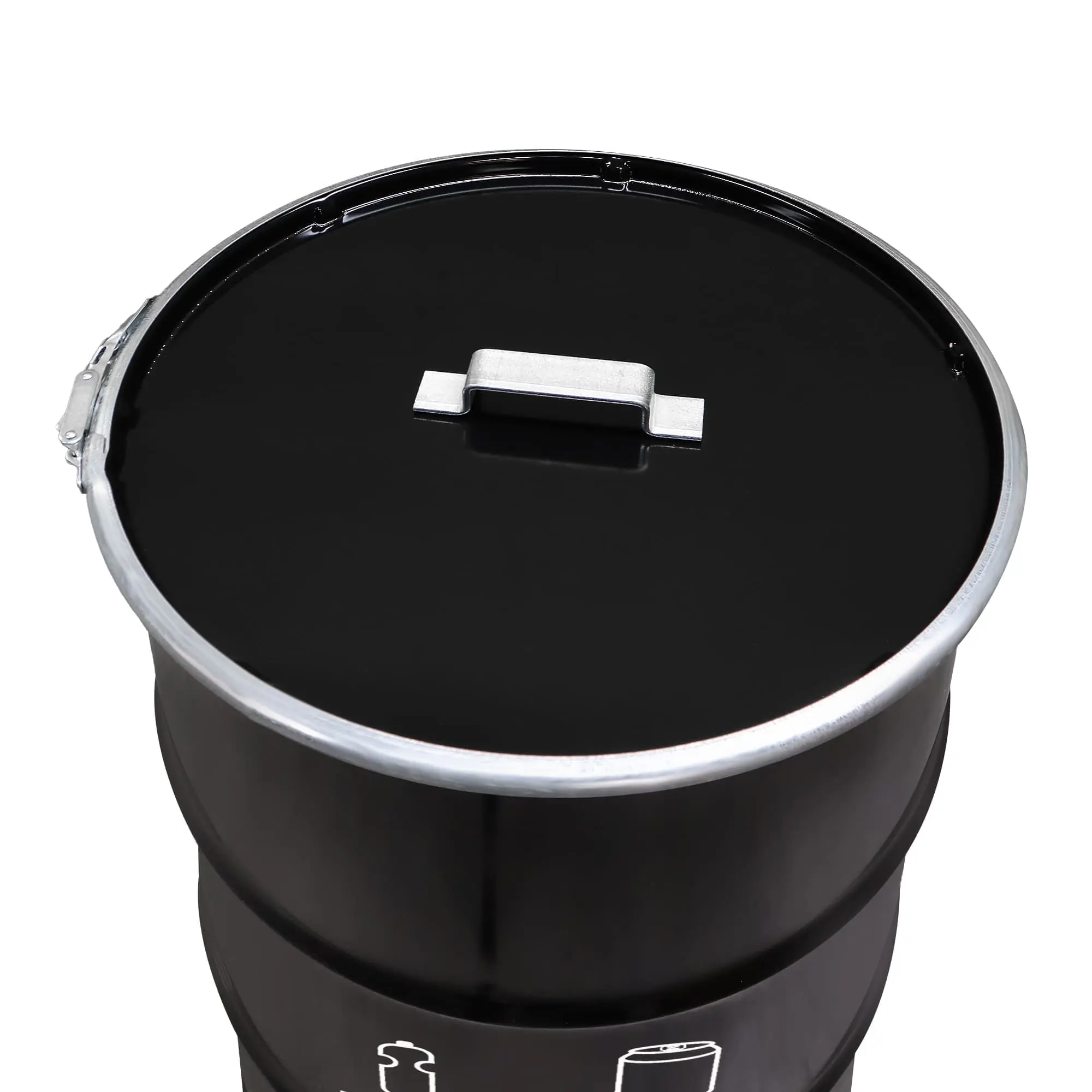Poubelle Upcycling BinBin 120L en Baril Métal Noir – Couvercle à Trou – Tri des Déchets