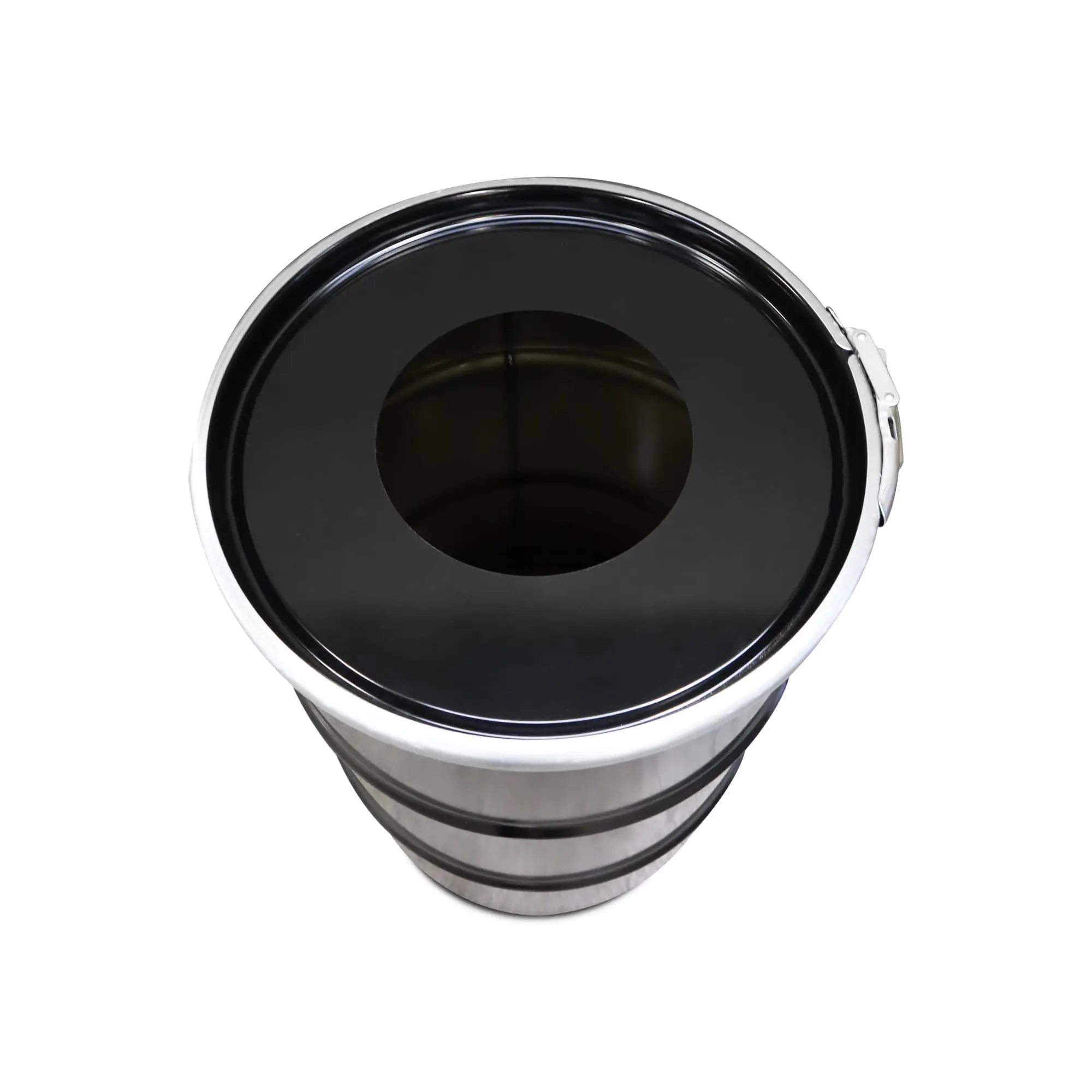 Poubelle Upcycling BinBin 60L en Baril Métal Noir avec Couvercle à Trou – Design Industriel