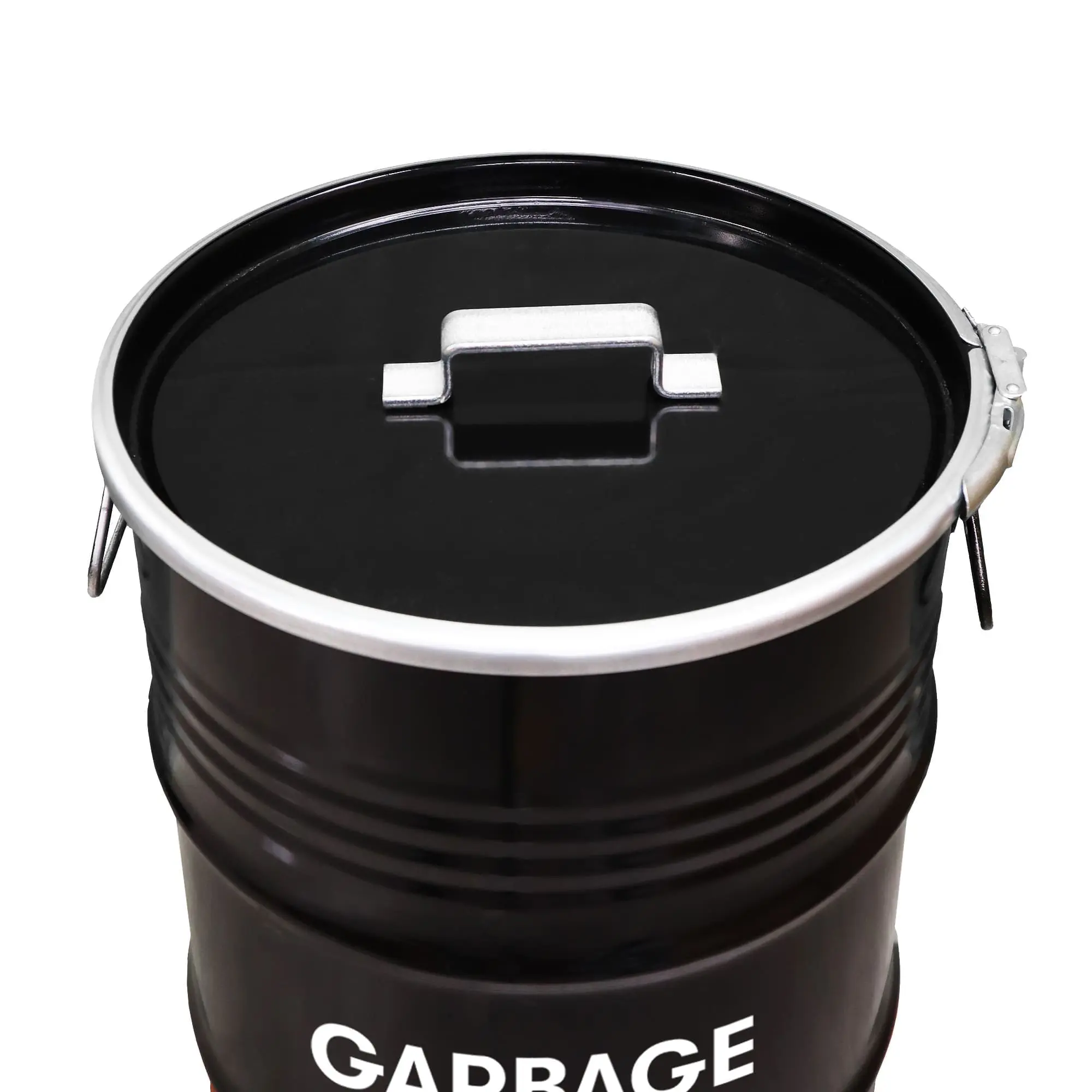 Poubelle industrielle upcyclée BinBin 60L – Collecteur de déchets robuste en baril métal noir