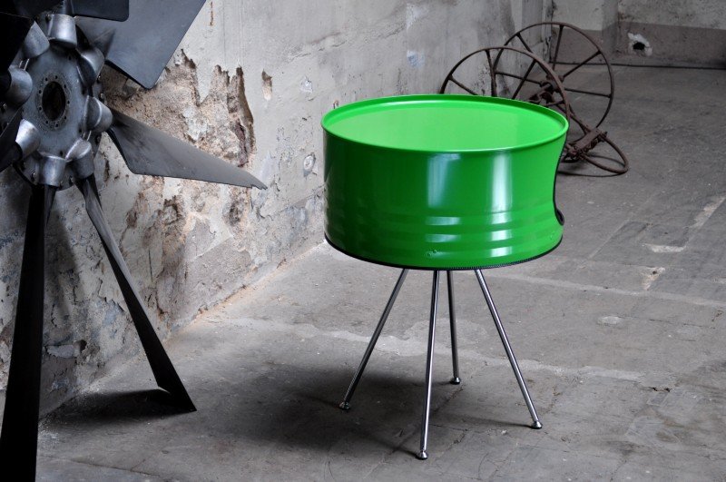 Table d’appoint industrielle en baril métal 200L – Upcycling personnalisable