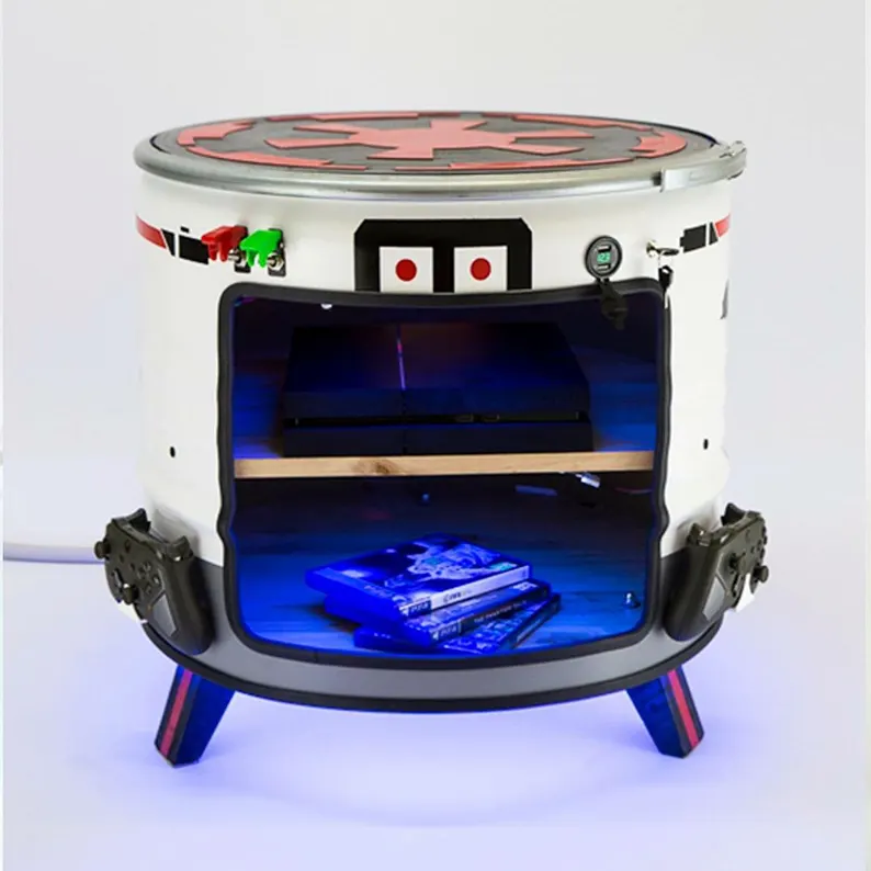 Table d’appoint gamer personnalisée en baril métal upcyclé – Design industriel sur mesure