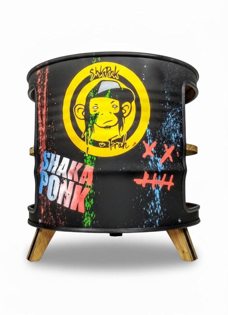 Table d’appoint rock en tonneau métal recyclé – Meuble upcycling graffiti artisanal