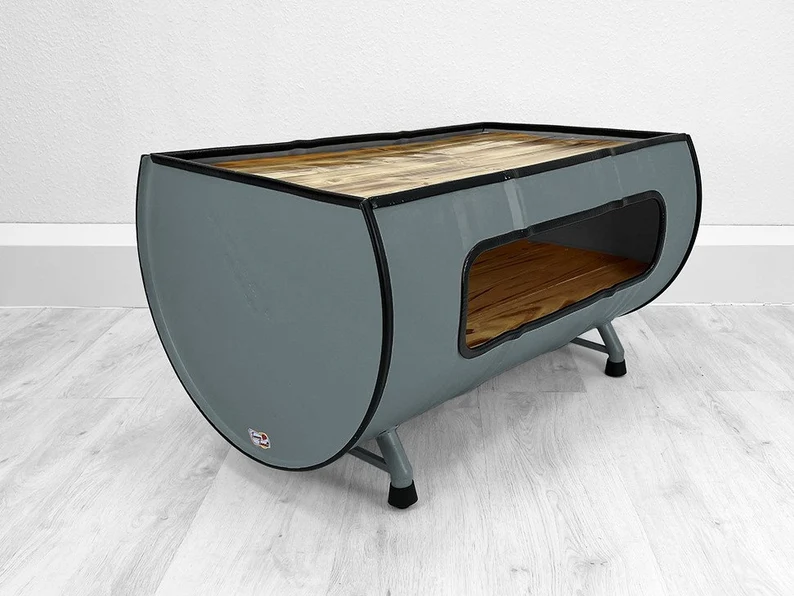 Table basse baril métal upcyclé « Nele » – Tonneau horizontal design industriel