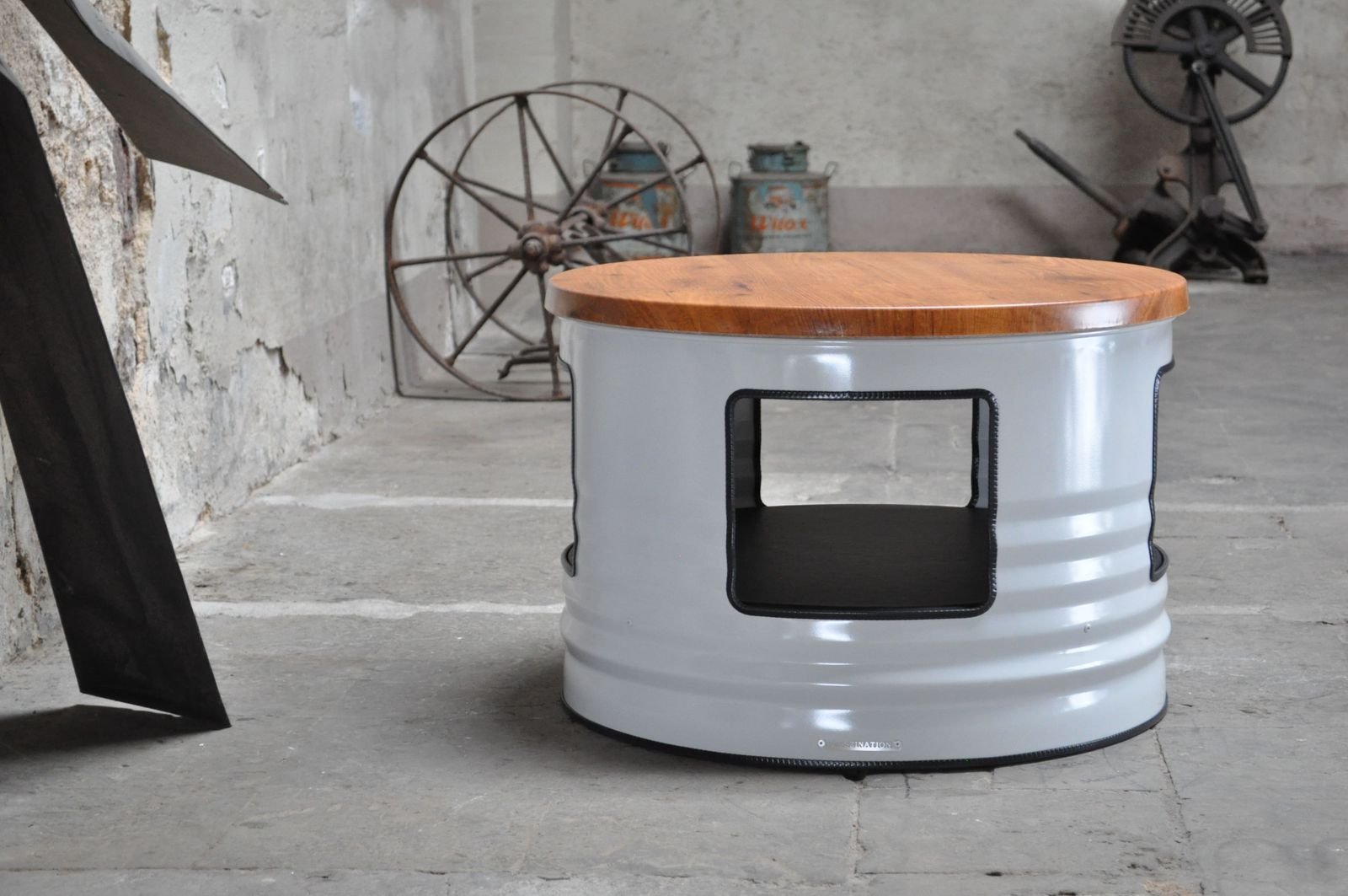 Table basse en baril métal upcyclé Ø60 cm – Design industriel personnalisable