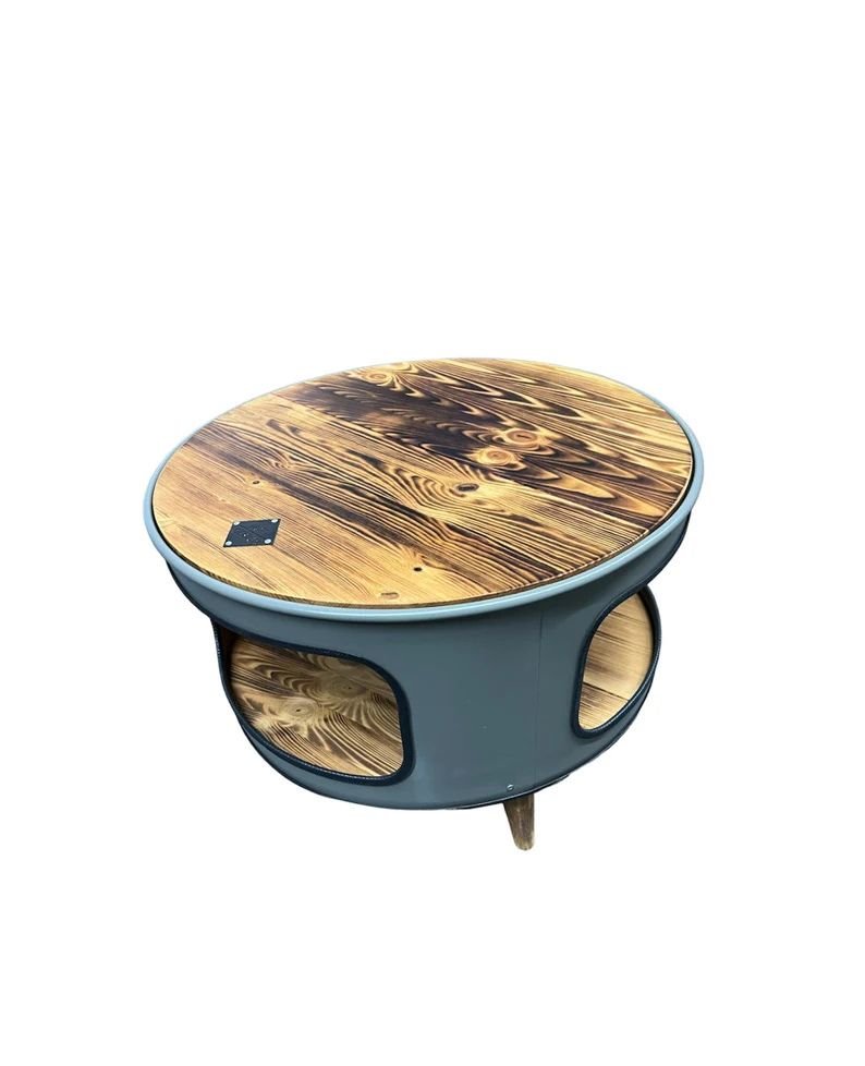 Table basse unique en baril métal upcyclé