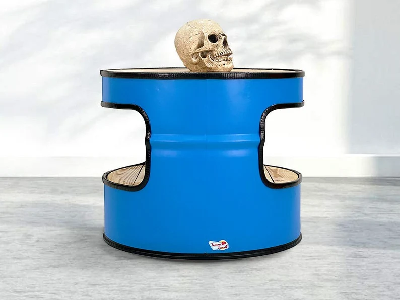 Meuble upcycling unique issu d’un fût pétrolier recyclé
