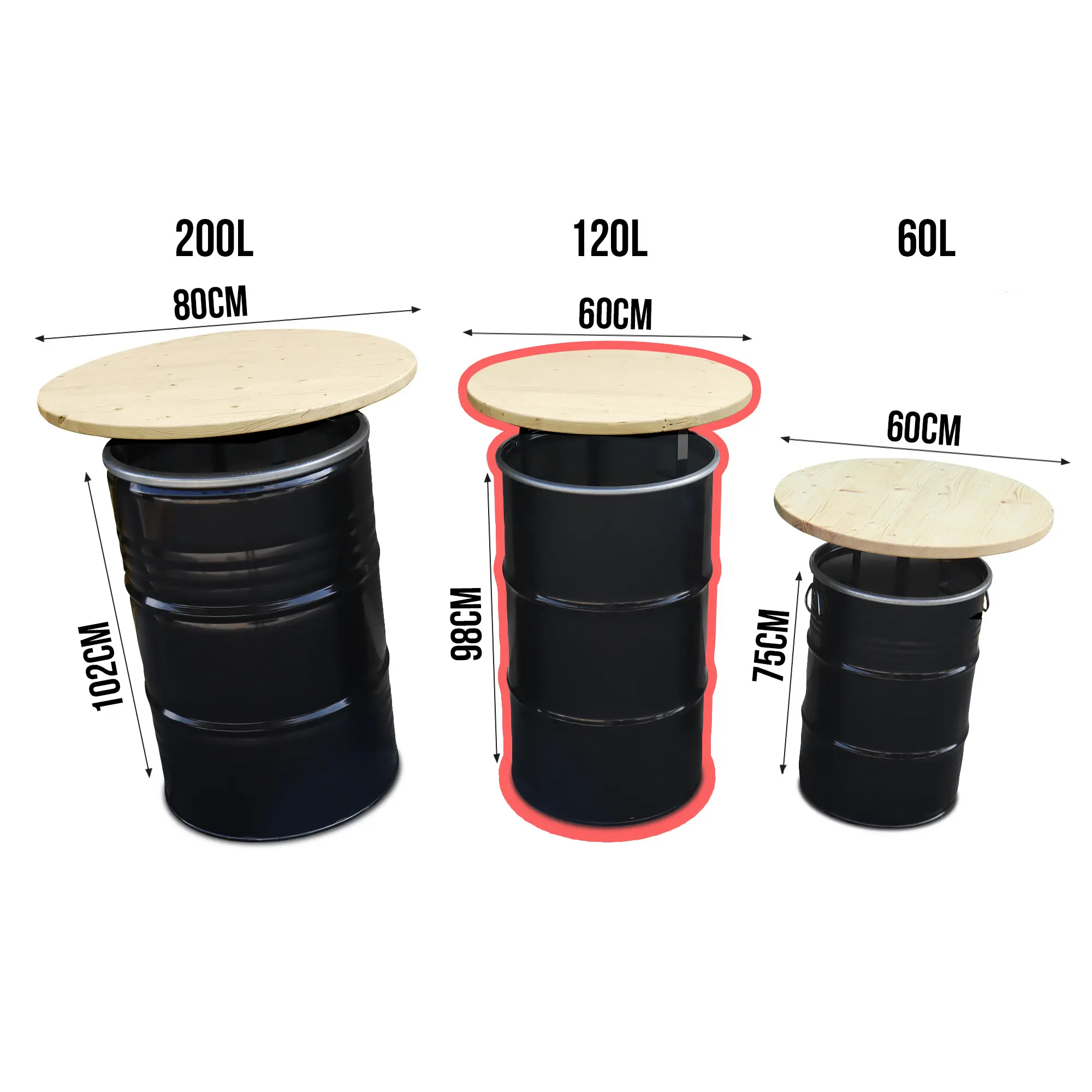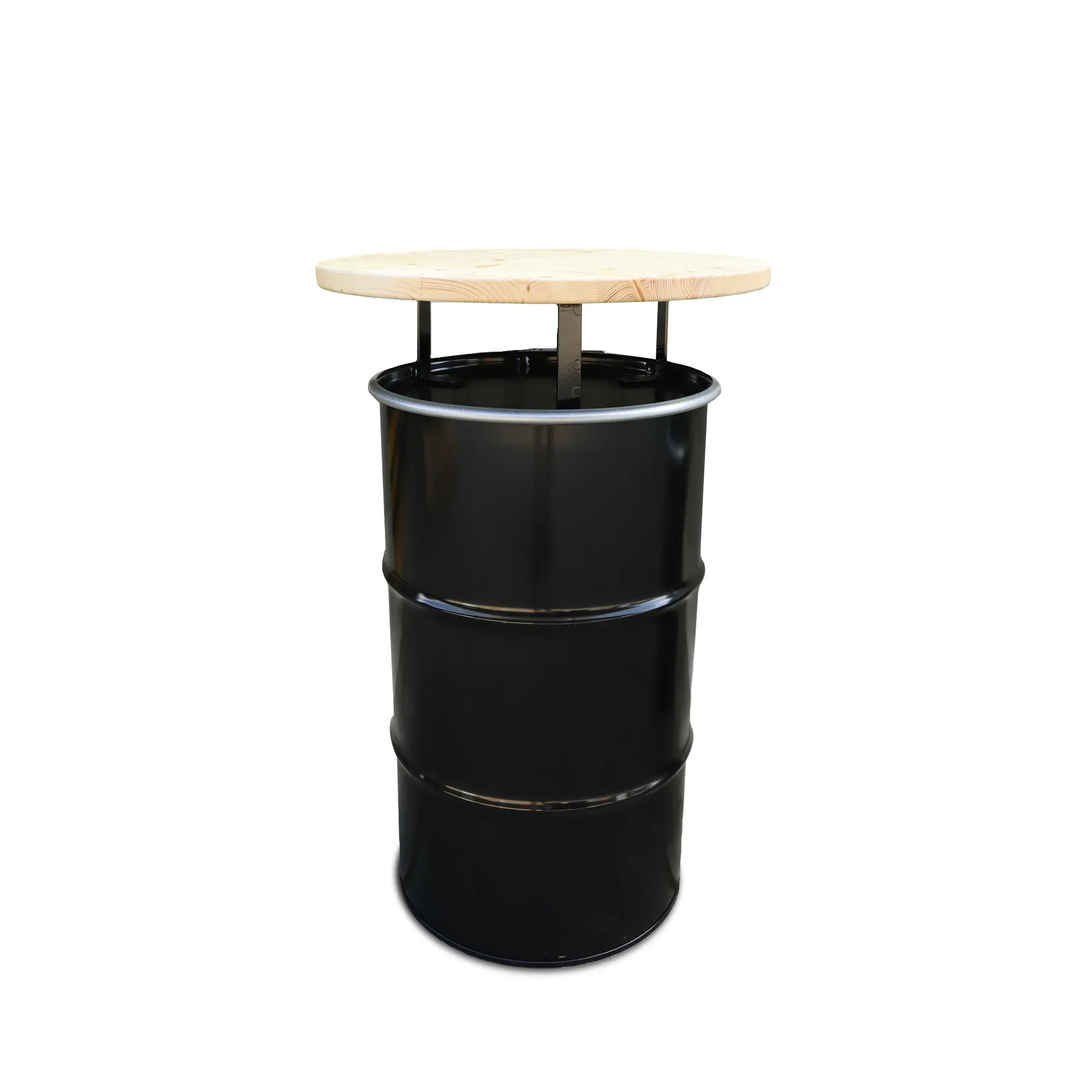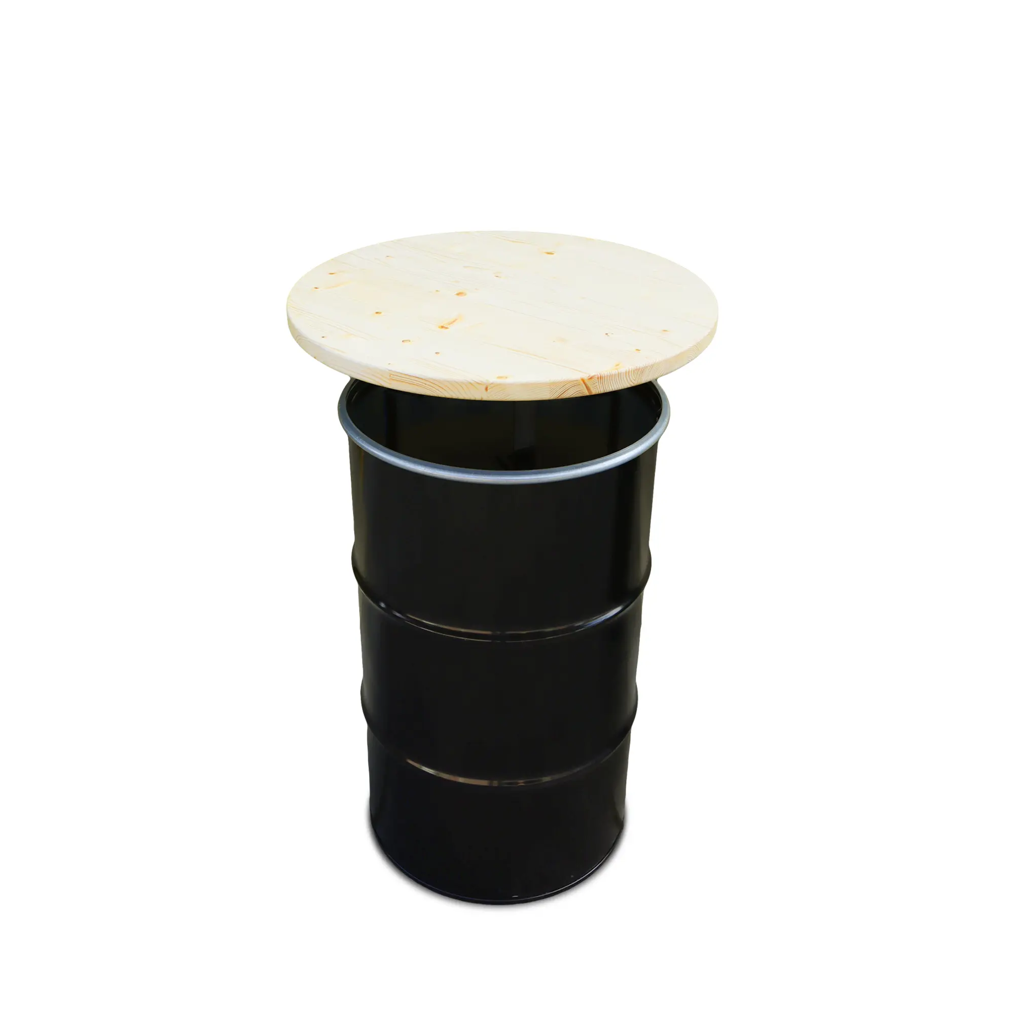 Le baril métallique et le plateau bois sont sélectionnés pour leur résistance, garantissant un produit fiable, réutilisable et conçu pour durer dans le temps.