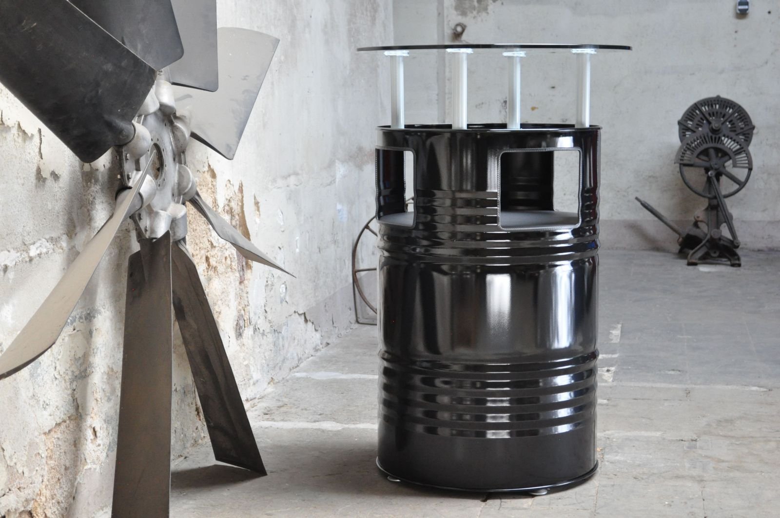 Cette table haute en tonneau métal 200 litres incarne parfaitement l’esprit du mobilier upcyclé moderne. À partir d’un fût métallique neuf soigneusement sélectionné, nos artisans transforment un objet industriel en un meuble design, robuste et fonctionnel. Chaque pièce est conçue pour allier esthétique industrielle, durabilité et personnalisation, tout en s’inscrivant dans une démarche de réemploi intelligent.