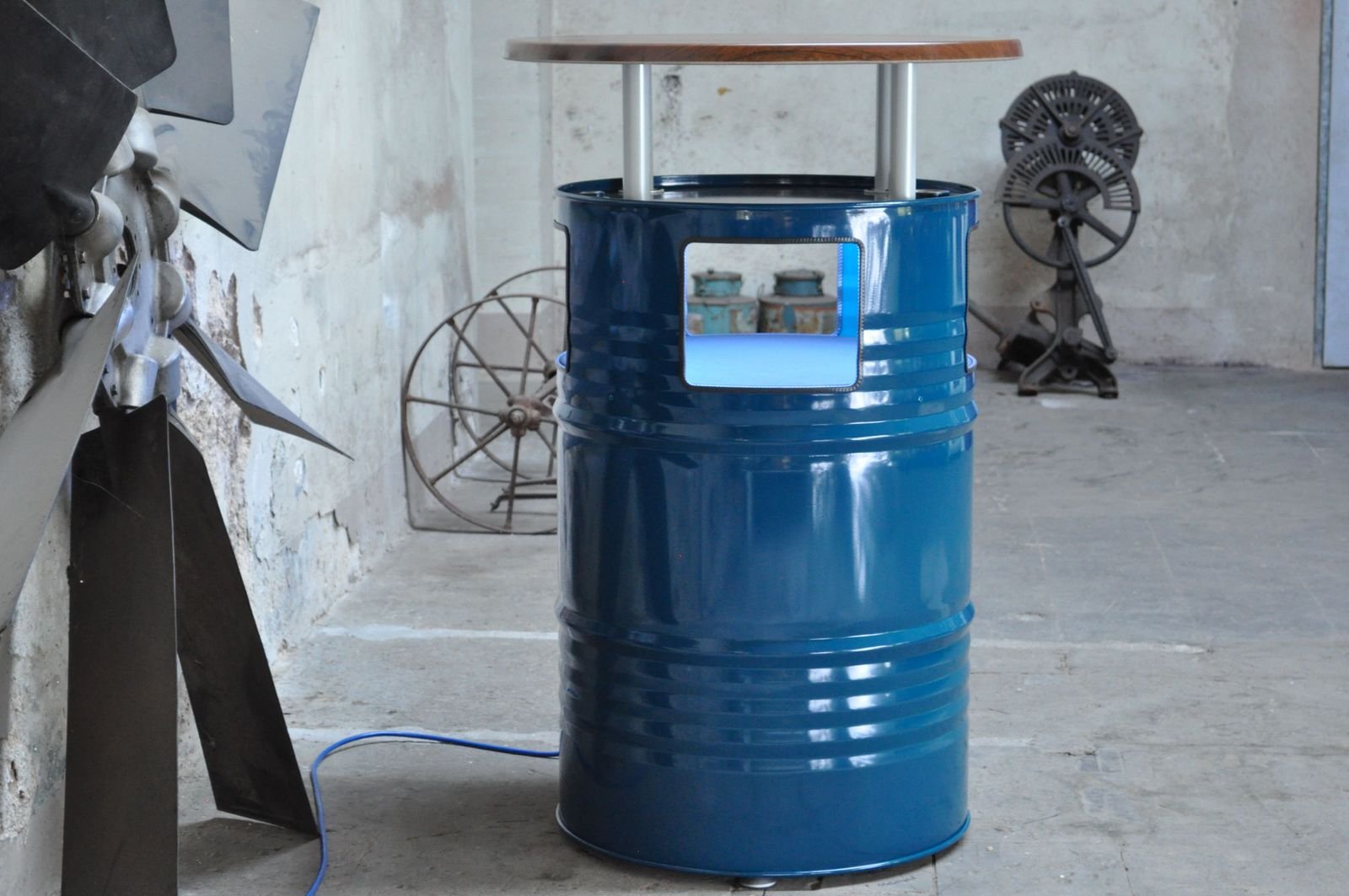 Table Haute en Tonneau Métal 200L Upcyclé – Personnalisable – Ø70 cm – Design Industriel