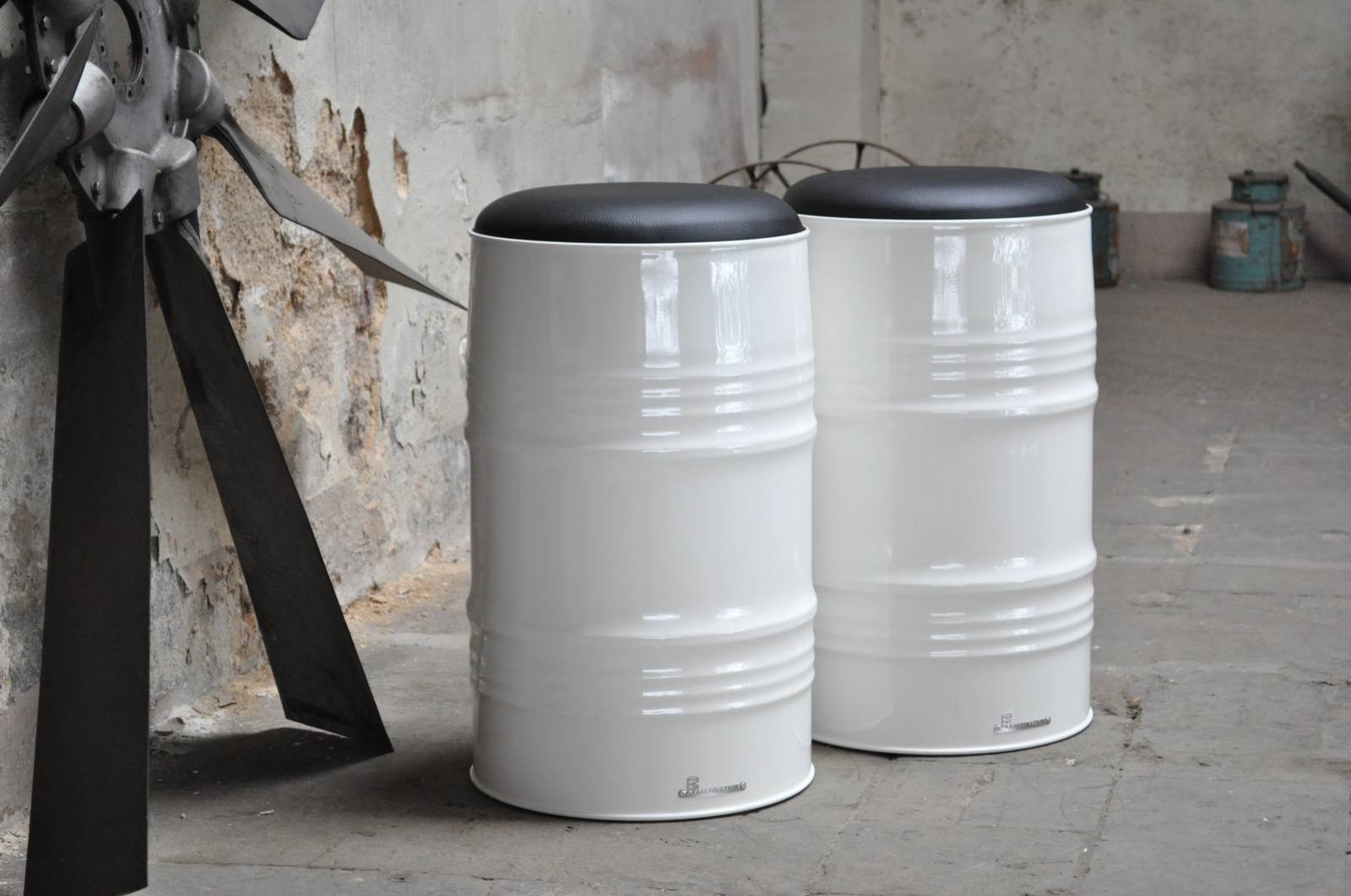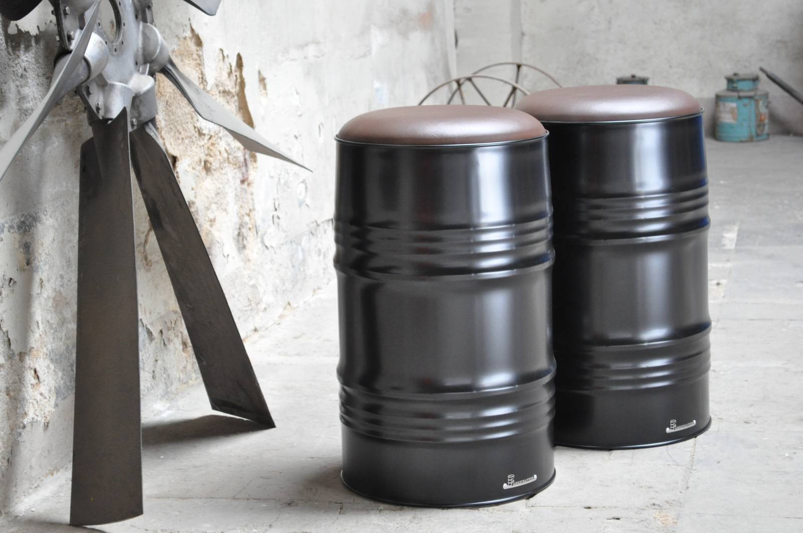 Tabouret en Tonneau Métal 200L – Assise Rembourrée Design Industriel Upcyclé