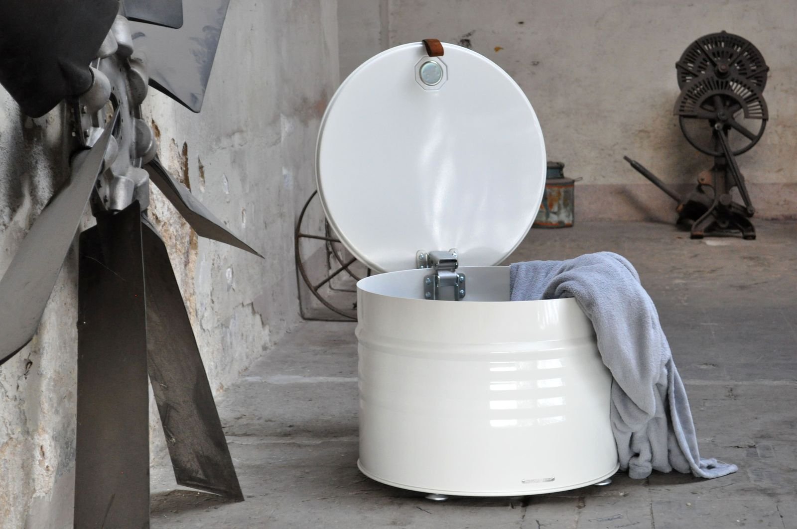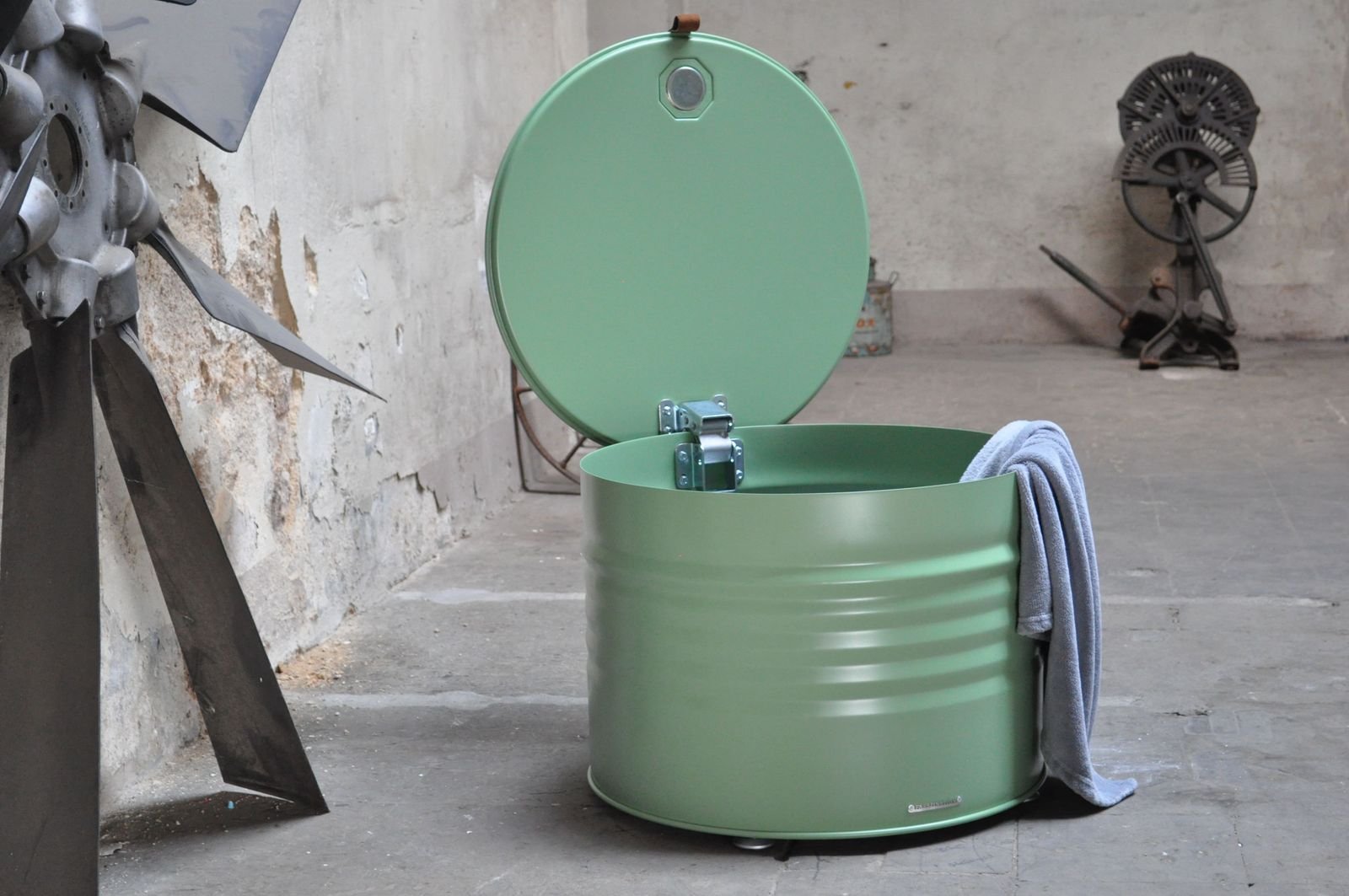 Ce meuble s’inscrit dans une démarche de mobilier durable et responsable. En transformant un baril métallique en truche fonctionnelle, nous contribuons à la réduction des déchets industriels et à la valorisation des matières premières existantes.